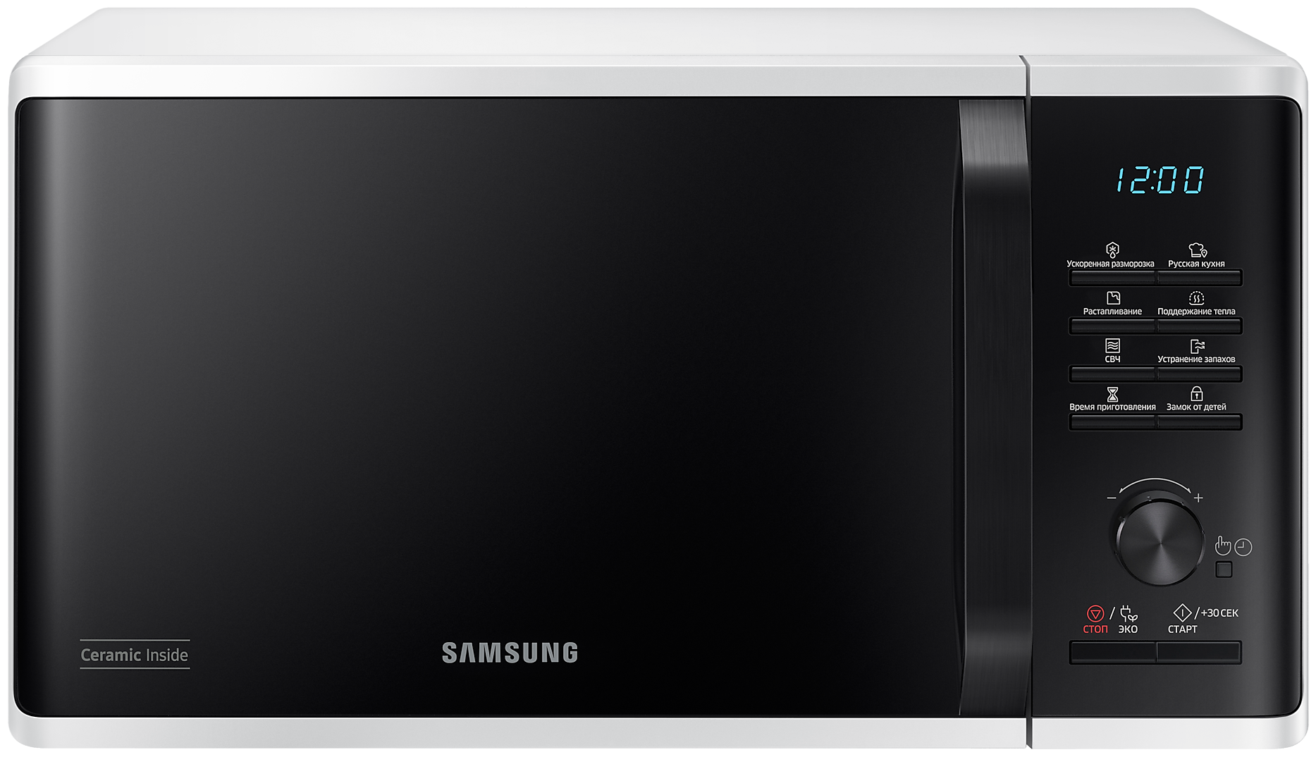 блокировка от детей, дисплей, кнопка +30 секунд, отключение звукового сигнала, подсветка камеры, система равномерного распределения микроволн, 9 % защита от бактерий, БИОкерамика - 99, Поворотный стол, С поворотным столом, Таймер, автоменю, быстрая разморозка