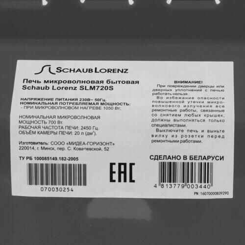 Микроволновая печь SCHAUB LORENZ SLM 720 S , инструкция - 1 шт.