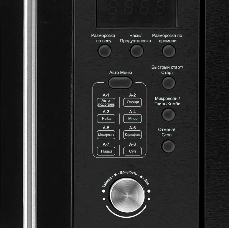 гриль, микроволны + гриль, разморозка, Макароны, Пицца, Поддержание тепла, Подогрев, Разогрев, Соло, Суп, автоматическое приготовление, автоматическое размораживание, гриль, микроволны + гриль, разморозка, микроволны, ускоренная разморозка