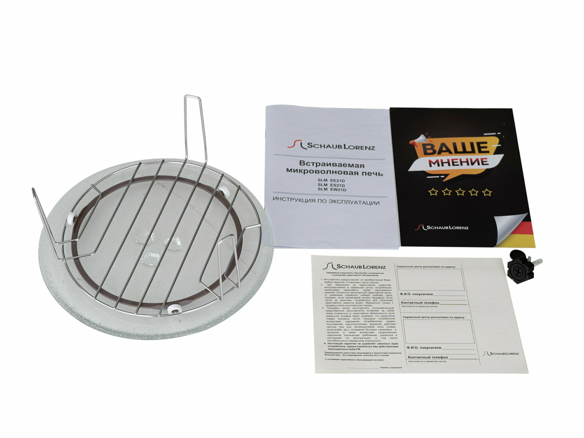 Встраиваемая микроволновая печь SCHAUB LORENZ SLM ES21D - инструкция 1 шт, Микроволновая печь Schaub Lorenz SLM ES21D Встраиваемая, Микроволновая печь Документация Упаковка, Поворотный стол диаметром 245 мм, Решетка для гриля, решеток для гриля - 1