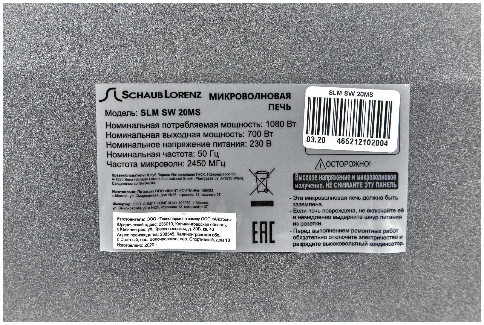Микроволновая печь SCHAUB LORENZ SLM SW20MS , инструкция - 1 шт., СВЧ печь, Стеклянный поднос, гарантийный талон, инструкция