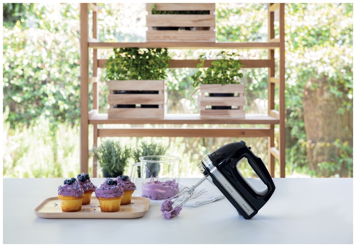 вращение чаши, кнопка отсоединения насадок, приспособление для намотки шнура, приспособление для хранения насадок, прорезиненная ручка, Отсек для шнура, Плавное изменение скорости
