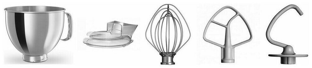 венчик для взбивания, крючки для замешивания теста, лопатка, большой венчик для взбивания, крюк для теста, лопатка для перемешивания, тестомес