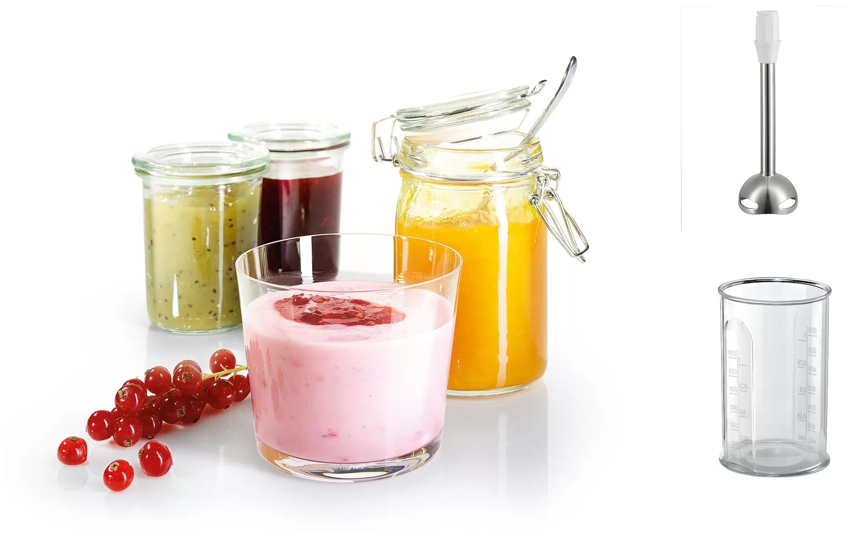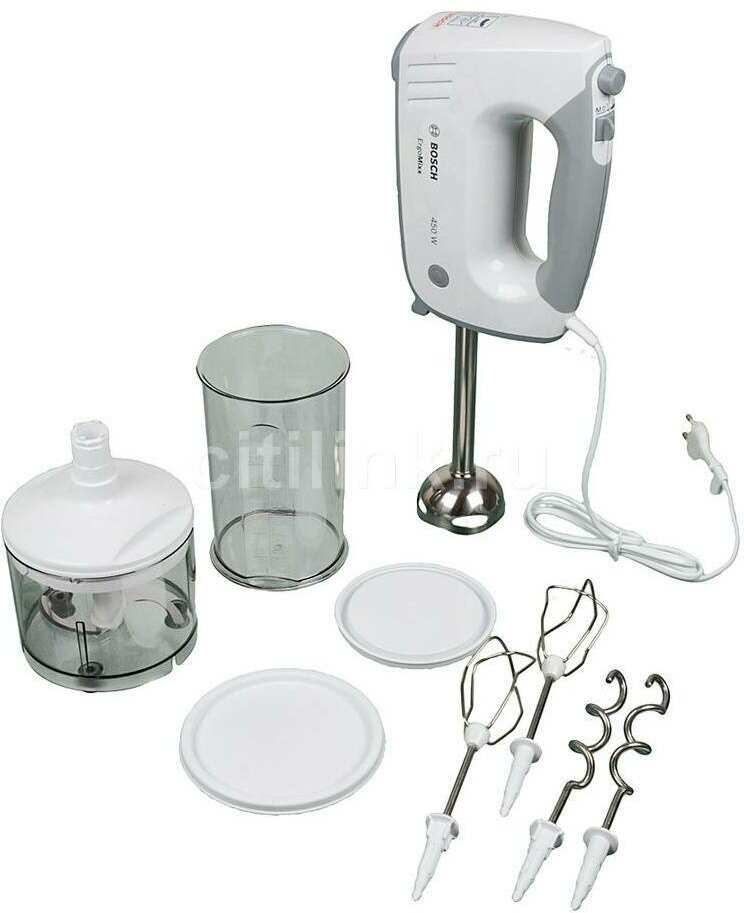 мерный стакан (700 мл), измельчитель (450 мл); венчики и крюки из нержавеющей стали