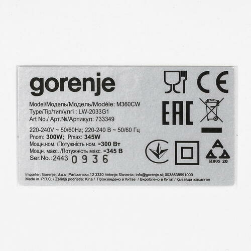 Миксер ручной Gorenje M360CW белый