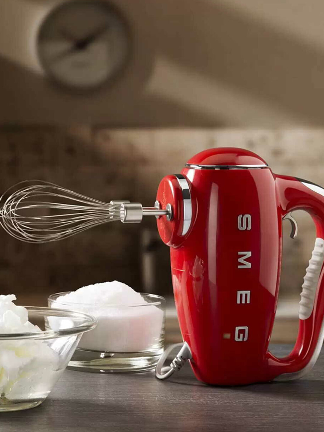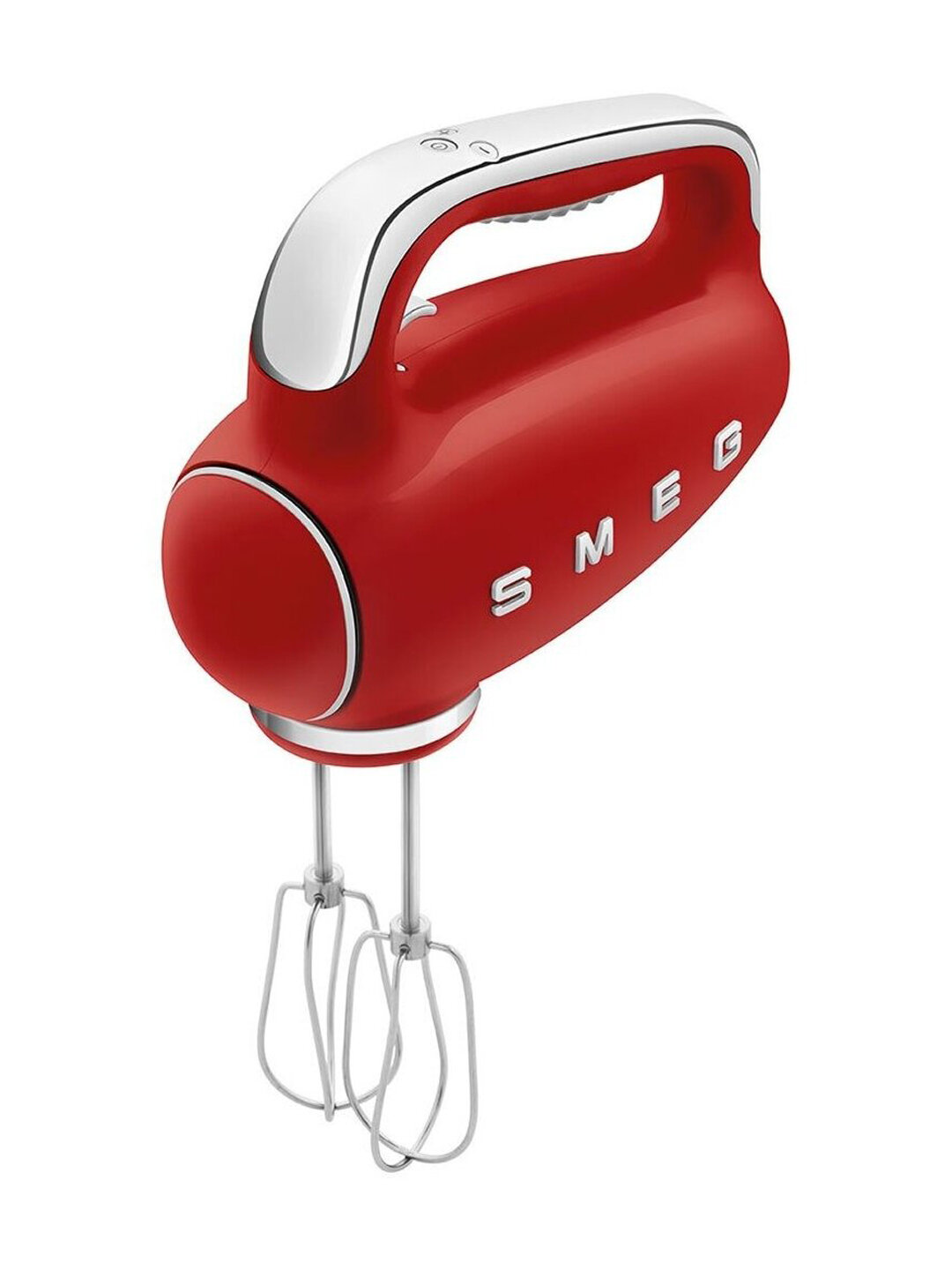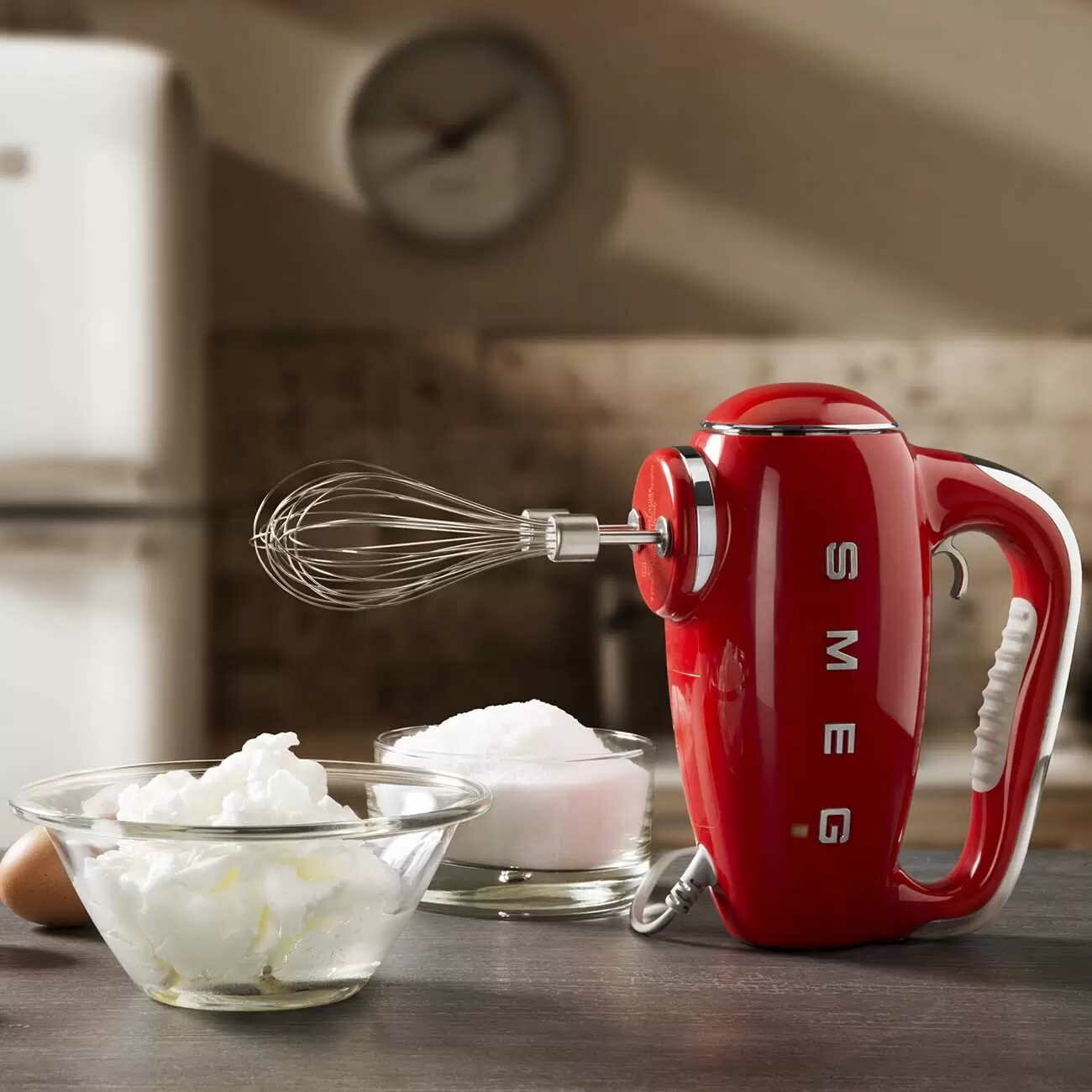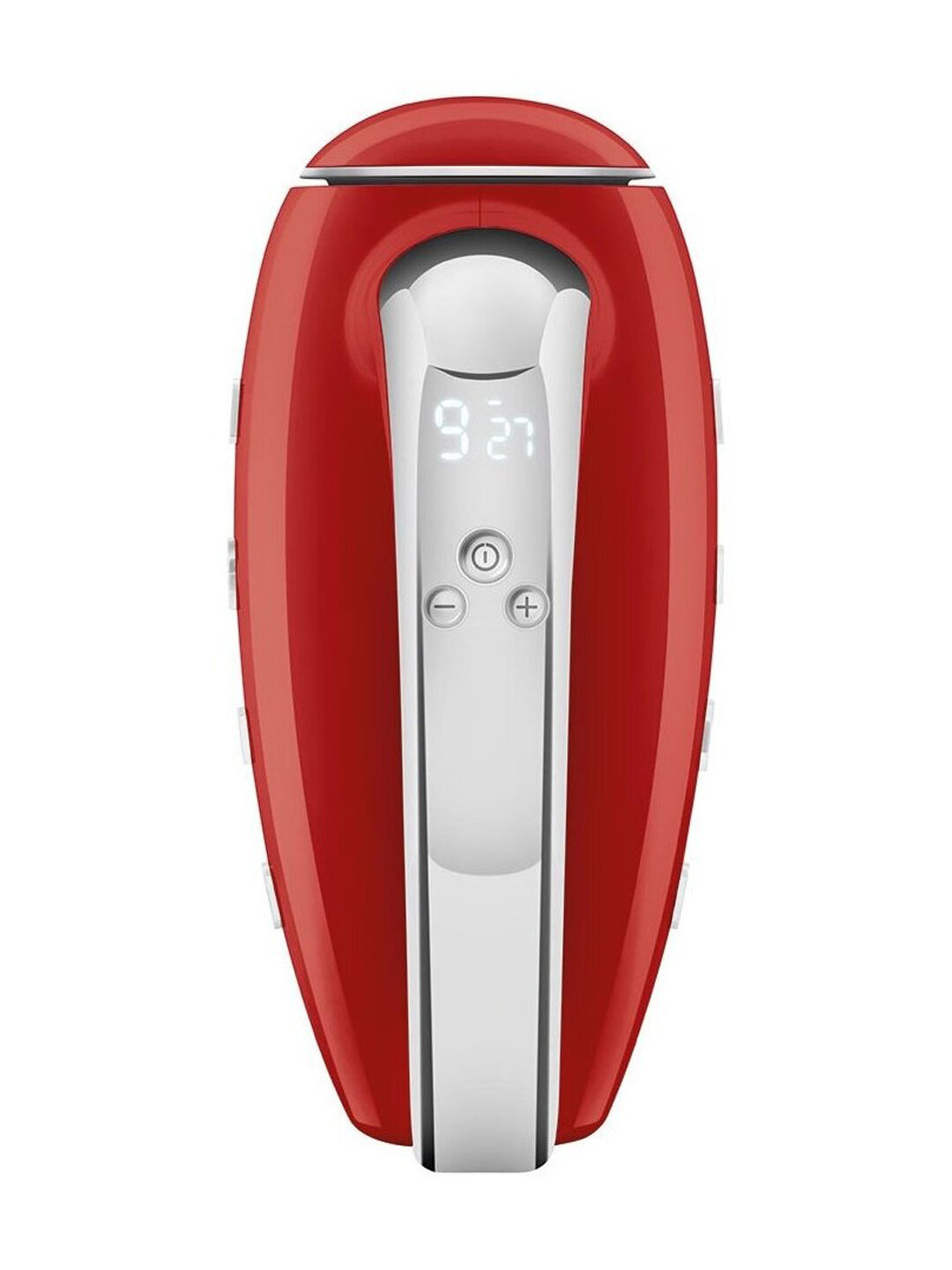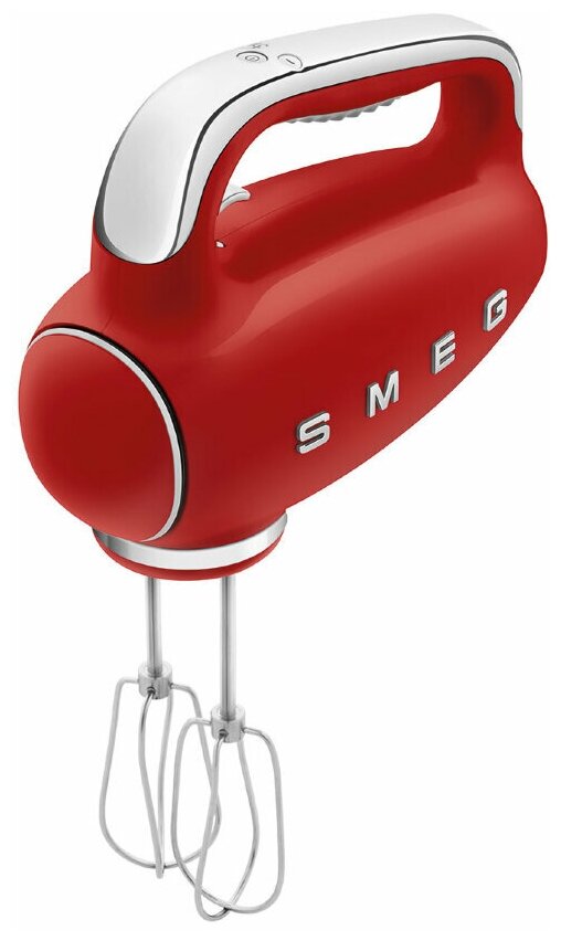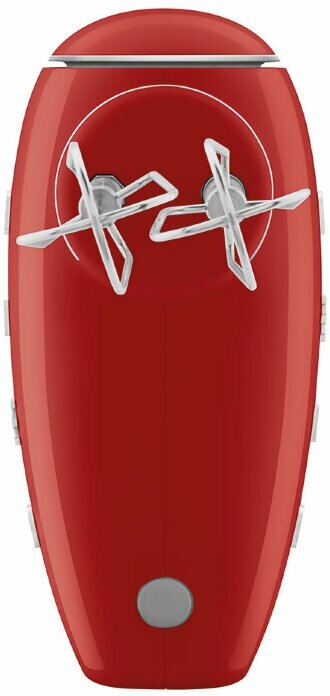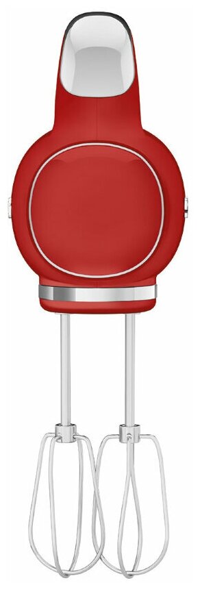 Отделка: Глянцевый, Эстетика: Стиль 50-х г.г., Материал корпуса: ABS пластик, Цвет основания: Полированный хром, Материал верхней части: Пластик, Материал нижней части: Soft touch пластик;Скорости вращения: 9, Плавный старт: есть, Таймер подсчета секунд: есть, Таймер подсчета минут: есть, Turbo режим: есть;Тип управления: 3 Кнопки + рычаг, Материал кнопок: Пластик, Цвет кнопок: Нержавеющая сталь, Материал рычага: Нержавеющая сталь, Цвет рычага: Нержавеющая сталь, Тип снятия аксессуаров: Рычаг, Дисплей: есть;Контроль скорости вращения: Электронный, Защита мотора от перегрузки: есть;Венчик: 2 шт., Сумка для аксессуаров: есть, Стяжка для крепления кабеля: есть, Материал сумки для аксессуаров: Хлопок, Крюк для замешивания теста: 2 шт., Материал крюка для замешивания теста: Нержавеющая сталь, Плоская насадка для теста: 2 шт, Материал плоской насадки: Нержавеющая сталь;