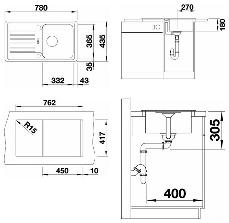 Размеры мойки (ШхГ)