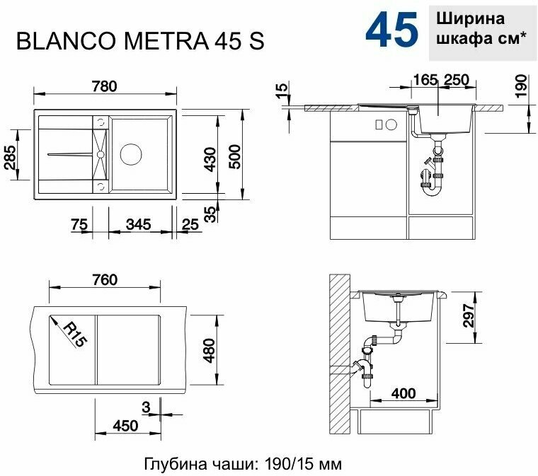 Отзывы о Мойка BLANCO METRA 45 S SILGRANIT антрацит с клапаном автоматом 513035