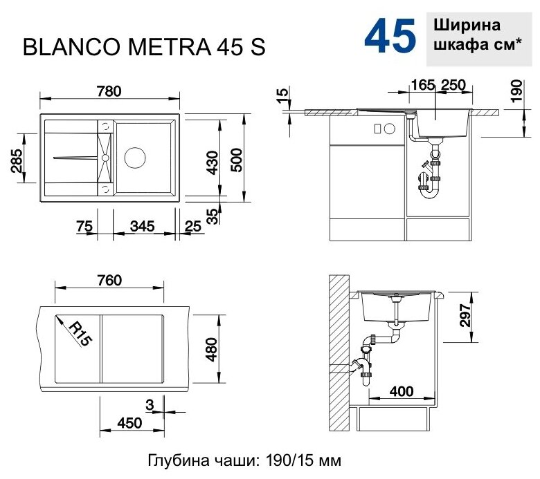 Отзывы о Мойка BLANCO METRA 45 S SILGRANIT белый с клапаном автоматом 513028