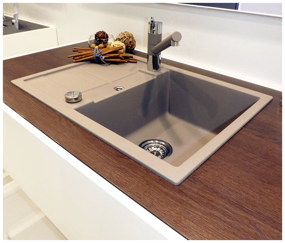 Эту модель посоветовала наша дизайнер, которая проектировала кухню. По ее словам, мойка с хорошим соотношением цена-качество. Она практически не окрашивается от цветных напитков и продуктов, долго сохраняет чисто белый цвет, хорошо выглядит.