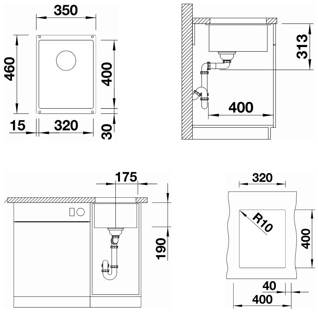 Мойка Blanco SubLine 320-U антрацит (523406)