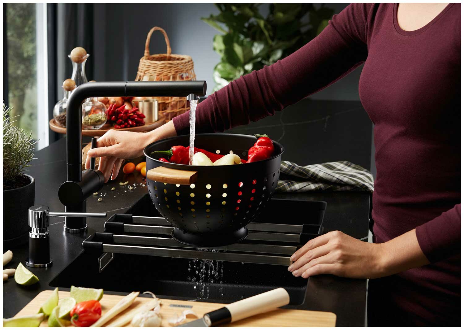 отводная арматура с корзинчатым вентилем 3.5 InFino™; набор крепежа (уплотнитель в набор не входит); элегантный и гигиеничный перелив C-overflow; монтаж под столешницу