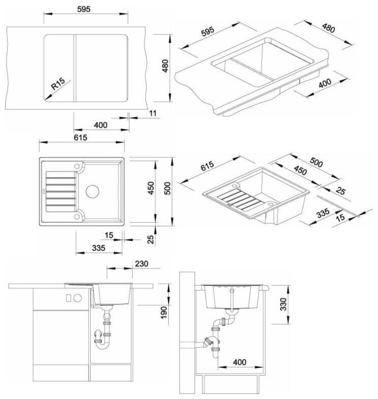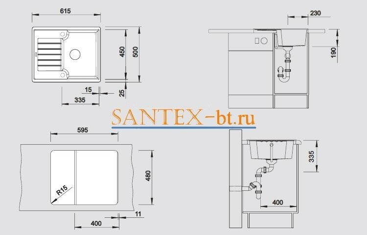 возможна установка под столешницу; в комплект входит отводная арматура с корзинчатым вентилем 3 ½