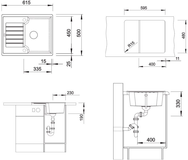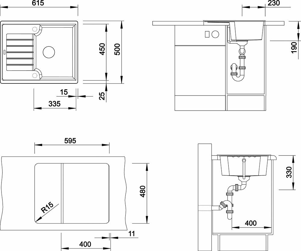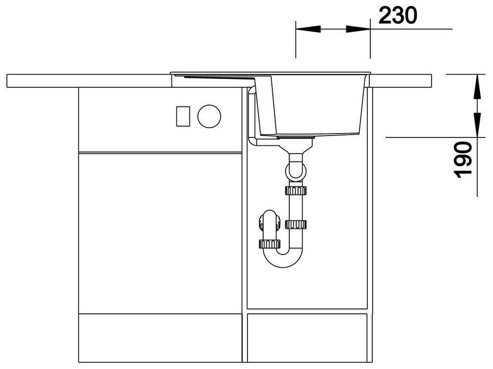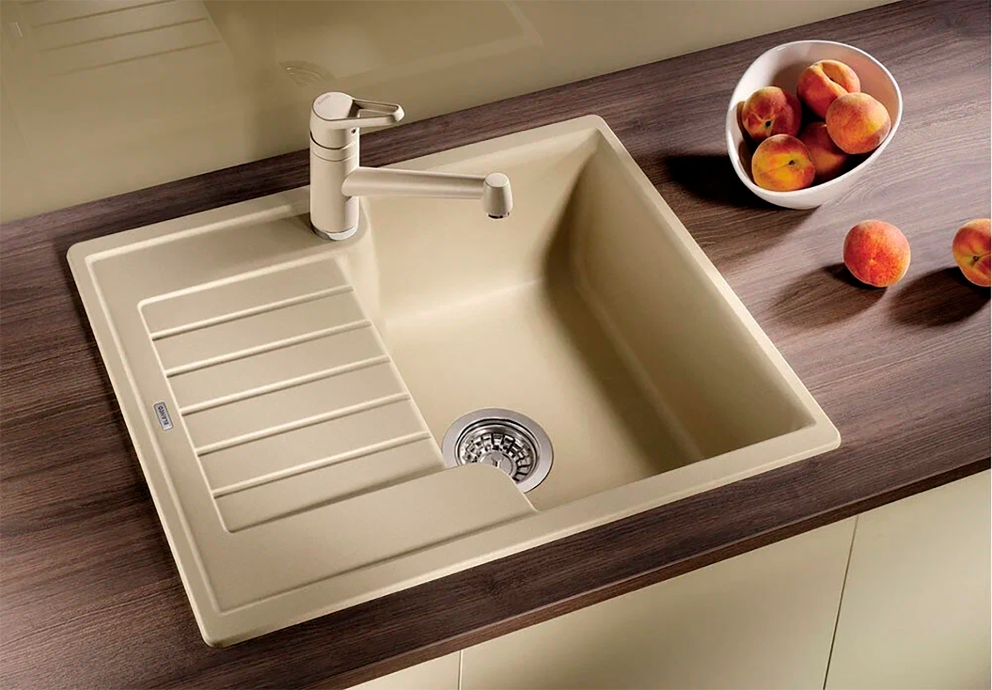 возможна установка под столешницу; в комплект входит отводная арматура с корзинчатым вентилем 3 ½