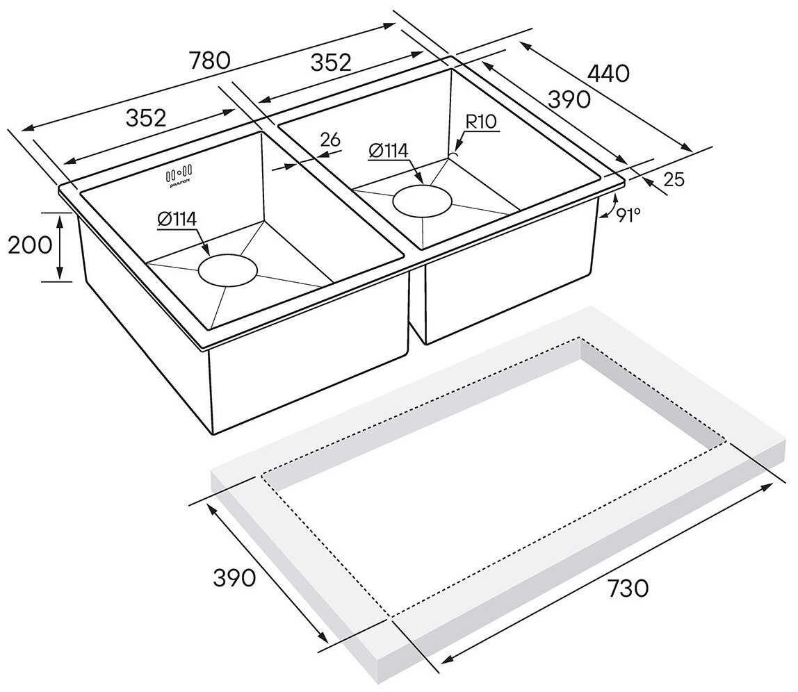 Мойка для кухни Paulmark TWIN PM237844-GM вороненая сталь