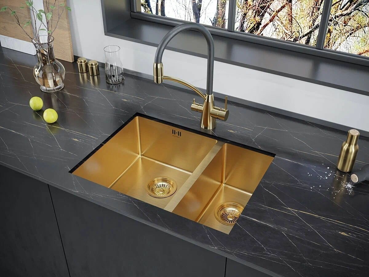 Отзывы о Мойка для кухни Paulmark ZUSAT PM225944-BGL брашированное золото, левая