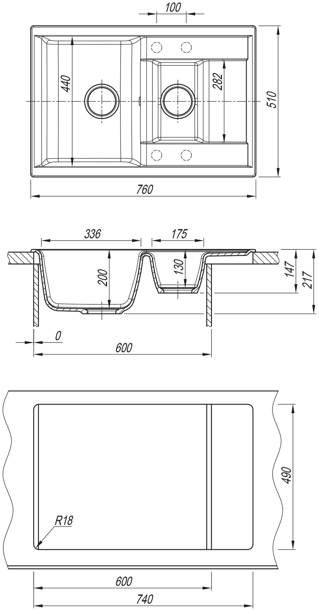 Ширина мойки