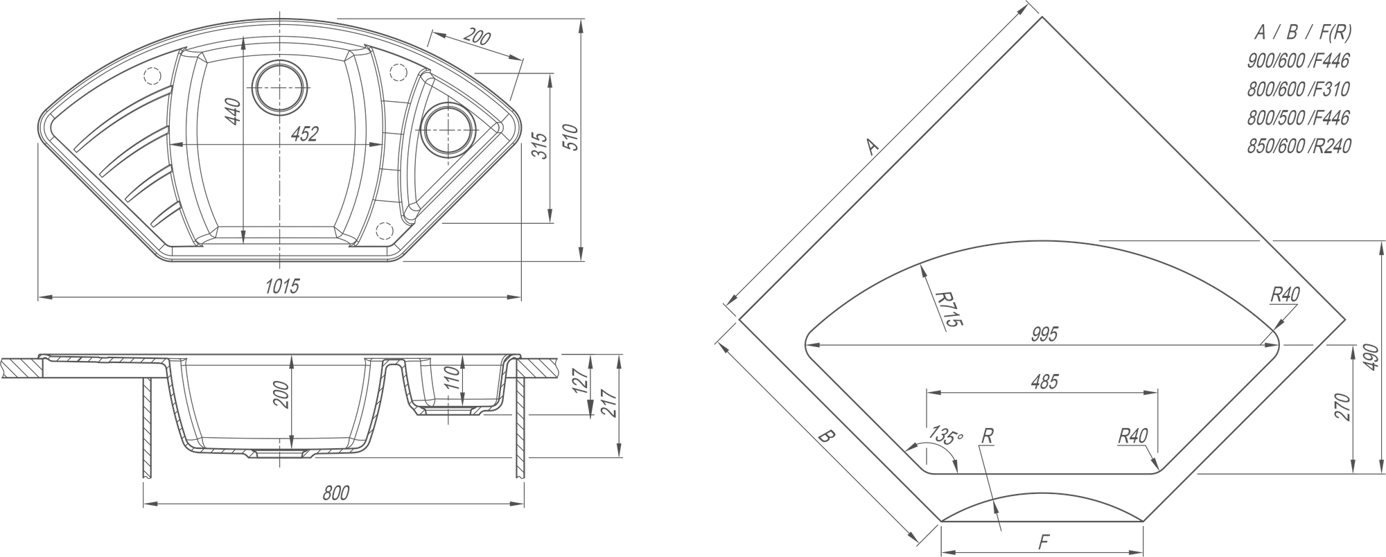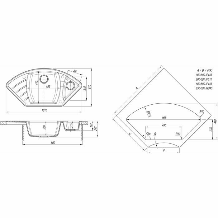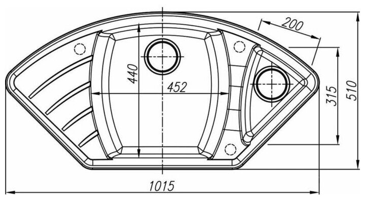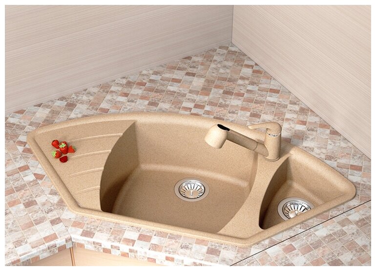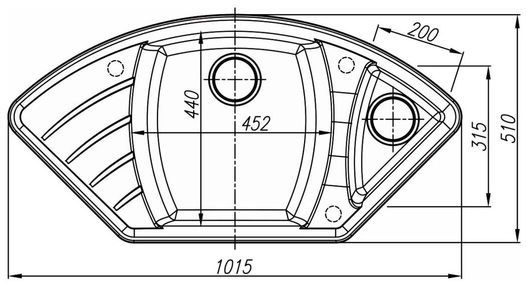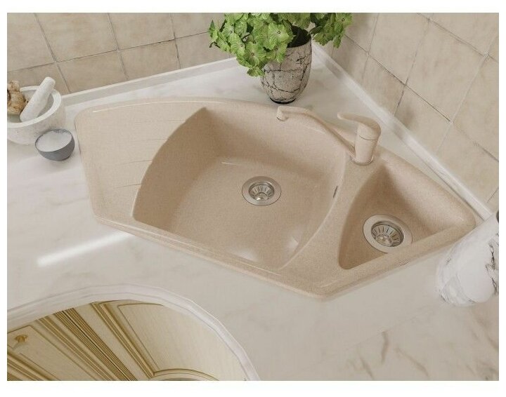 дополнительная чаша, угловая, Дополнительная чашаПереливС сифономСливные желобки на крыле, ПереливС сифоном, корзинчатый вентиль, отверстие под смеситель, сливная арматура