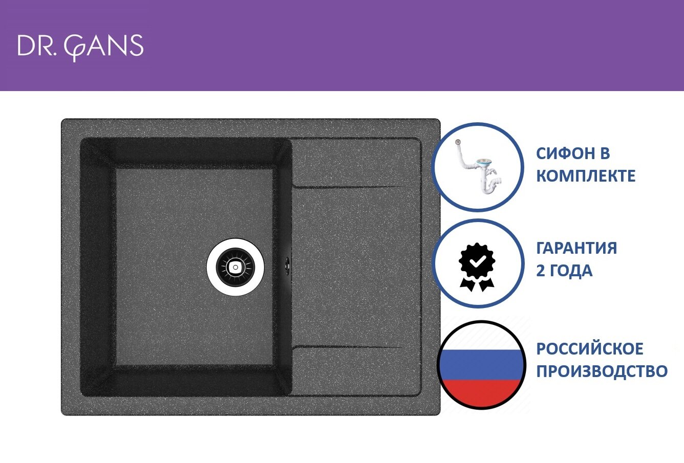 Мойка Dr.Gans Техно 650 черная (25.030.C0650.407)