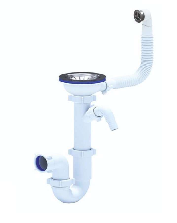 корзинчатый вентиль, отверстие под смеситель, сливная арматура, Отводная арматура с выпуском 3 ½ ” (D=90 мм) и переливом, набор крепежей, отводная арматура с выпуском 3 1/2" (D=90мм) и переливом