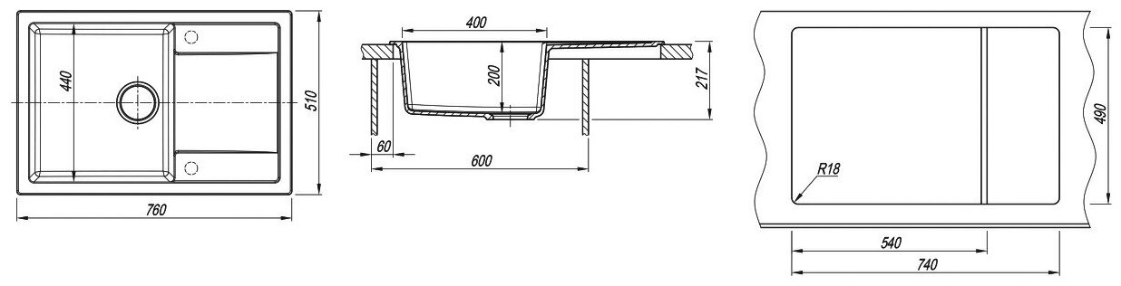 Перелив, ПереливС сифоном, ПереливС сифономСливные желобки на крыле, корзинчатый вентиль, отверстие под смеситель, сливная арматура