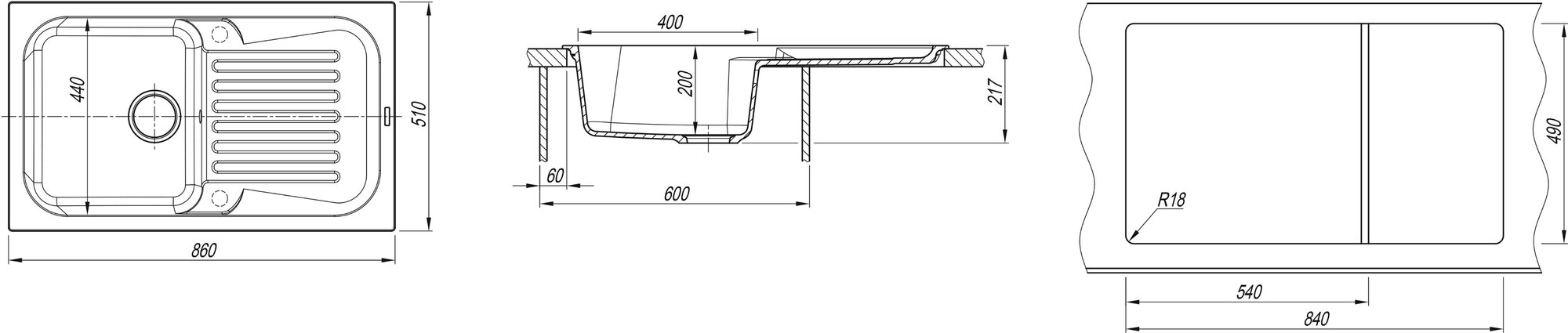 Ширина мойки