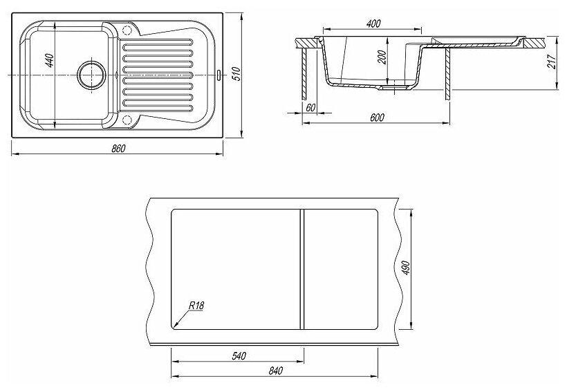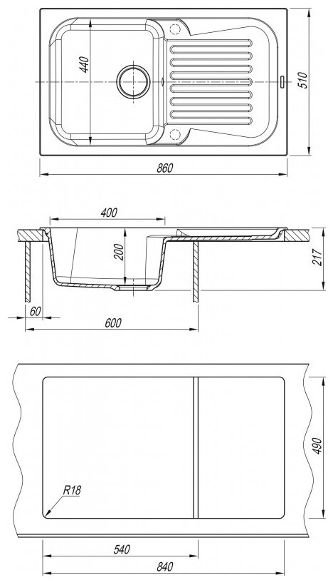 корзинчатый вентиль, отверстие под смеситель, сливная арматура, документация, мойка