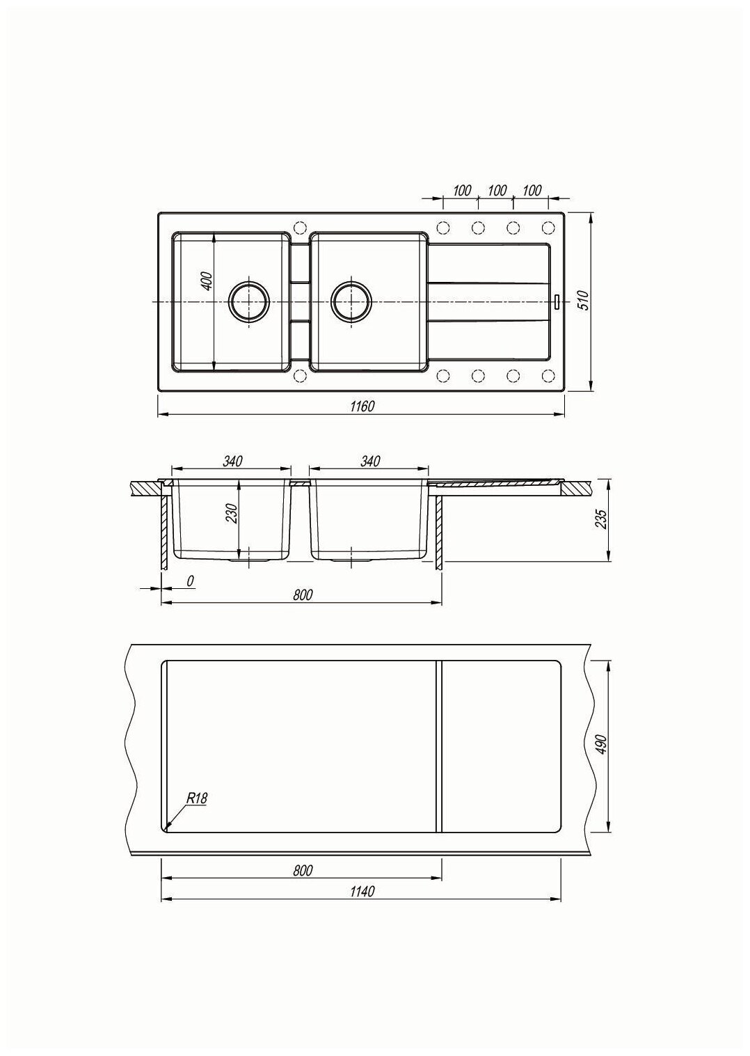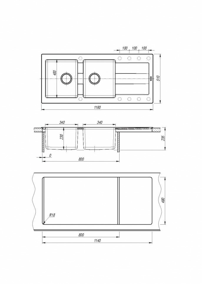 материал чаши мойки - нержавеющая сталь марки AISI 304, толщина 1 мм
