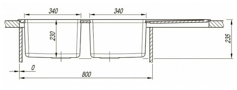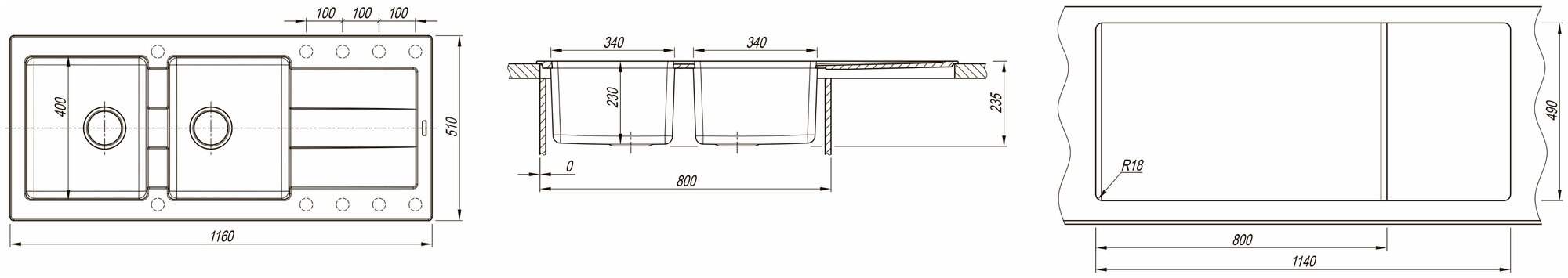 дополнительная чаша, С сифоном, отверстие под смеситель