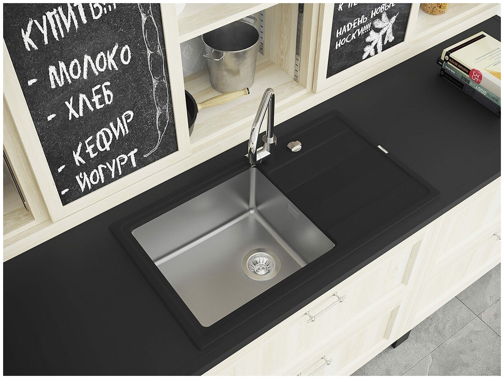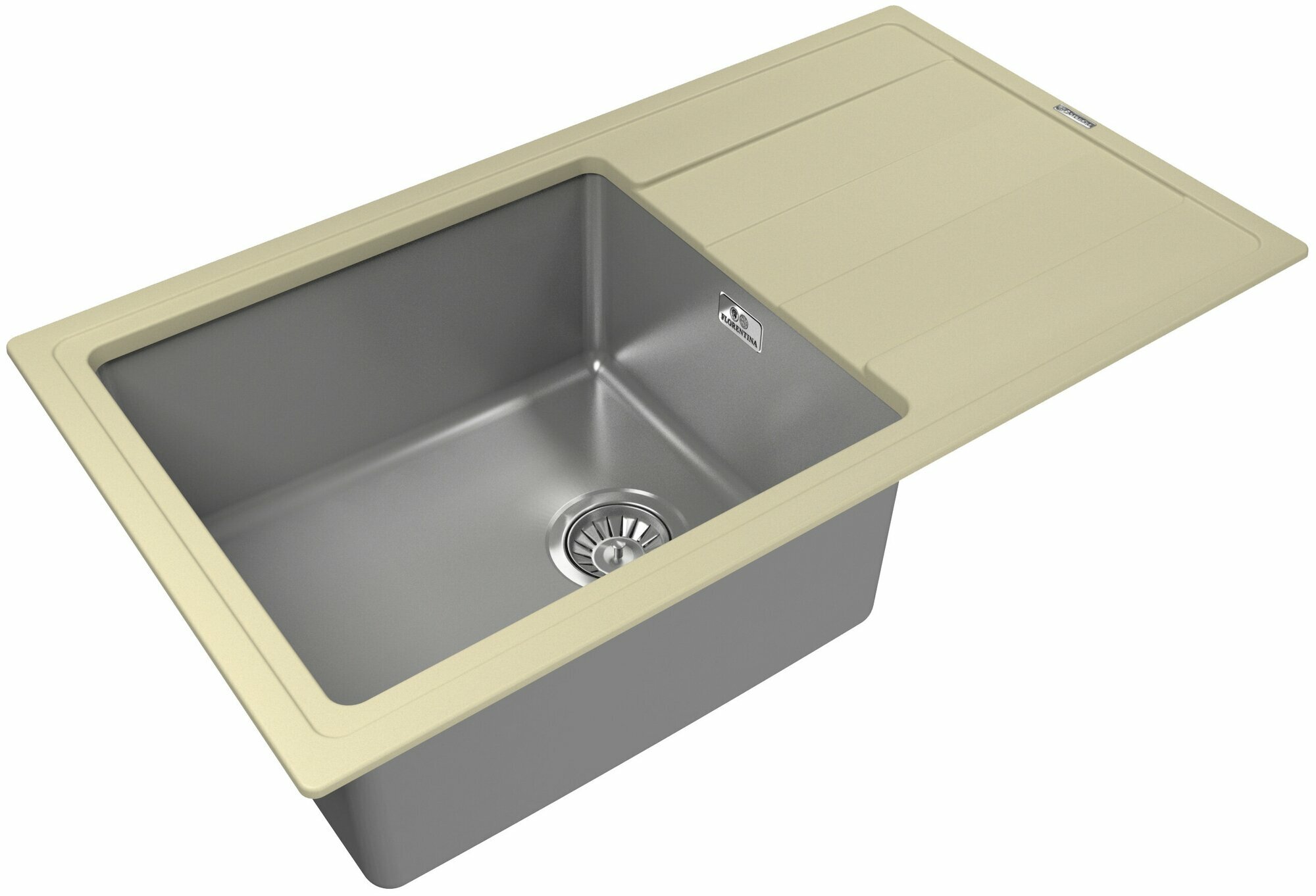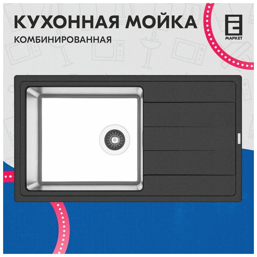 материал столешницы мойки - кварцевый композит; материал чаши мойки - нержавеющая сталь марки AISI 304, толщина 1 мм