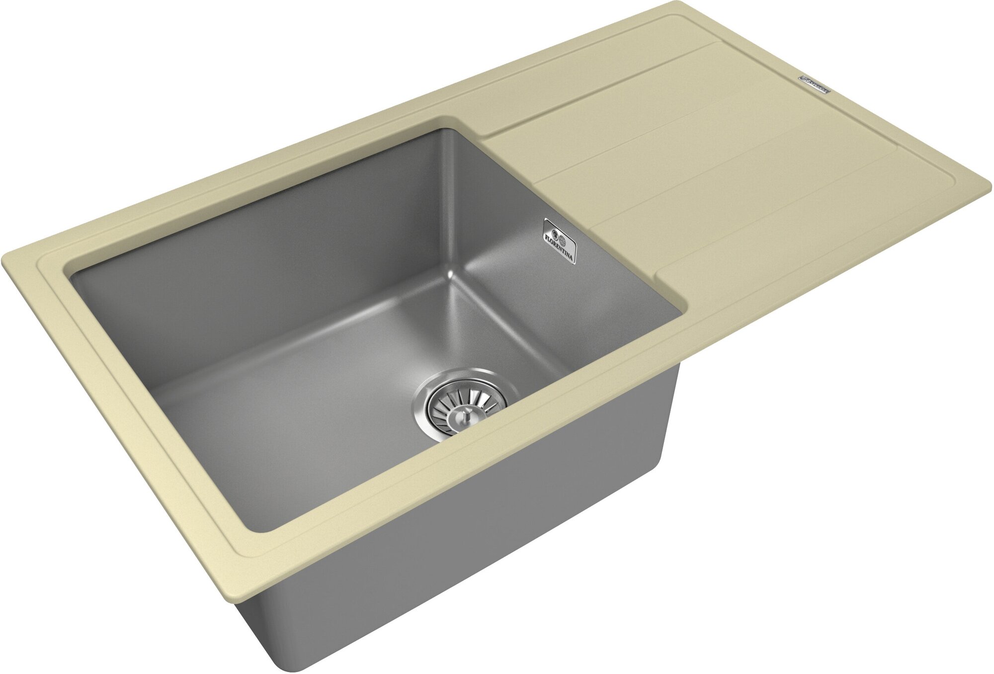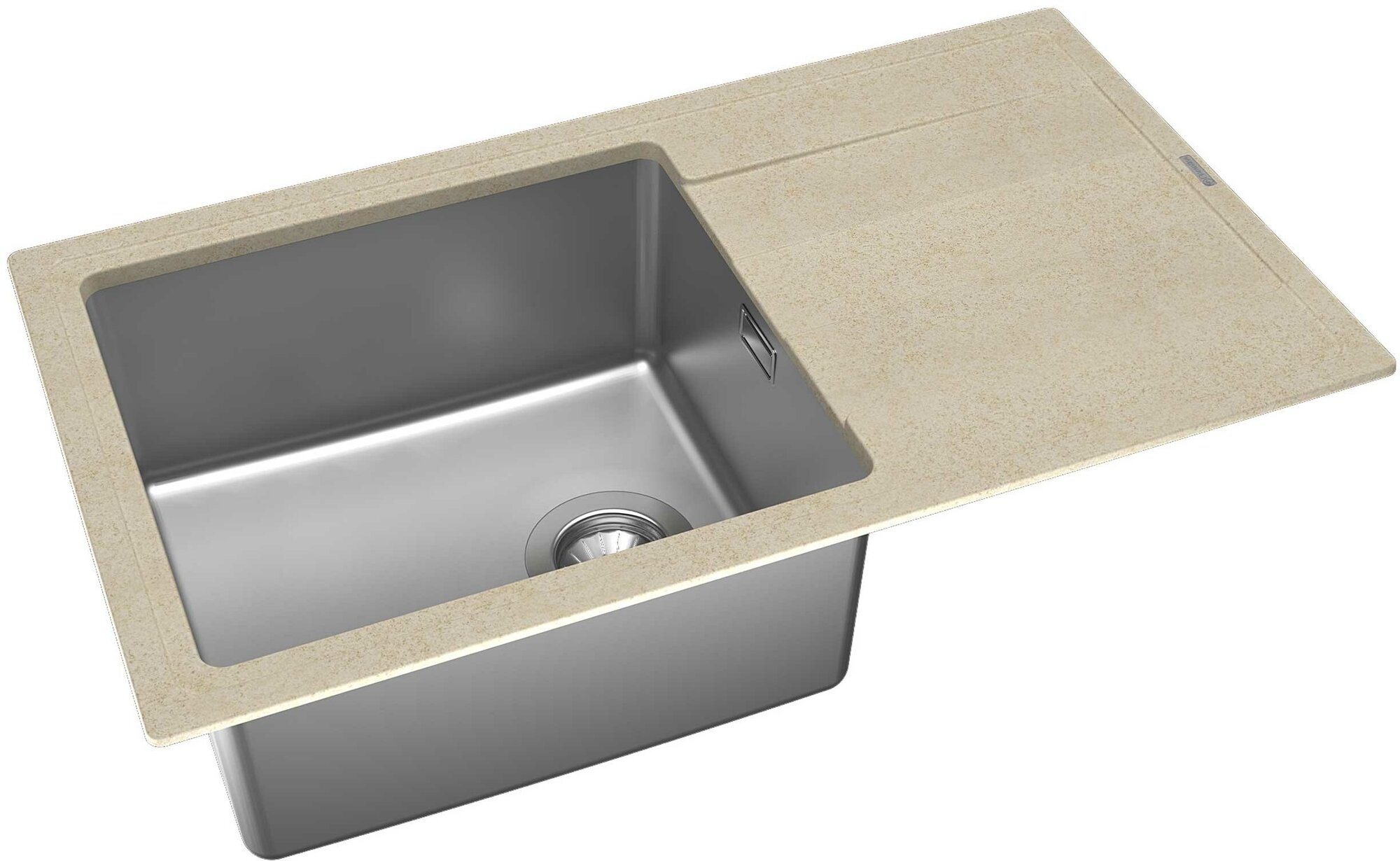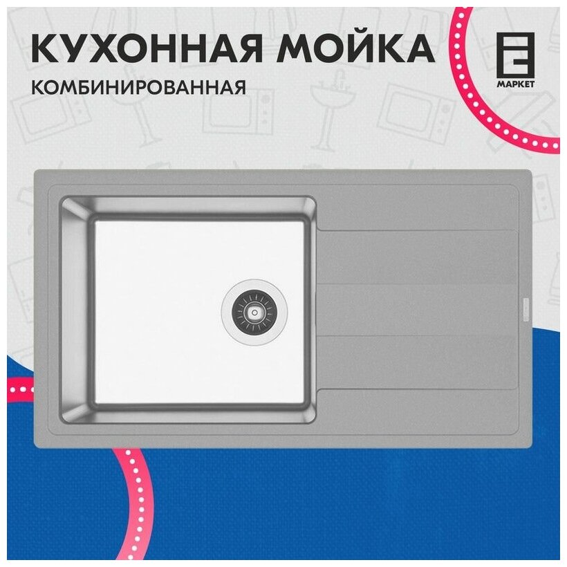 материал столешницы мойки - кварцевый композит; материал чаши мойки - нержавеющая сталь марки AISI 304, толщина 1 мм