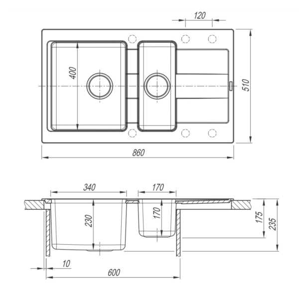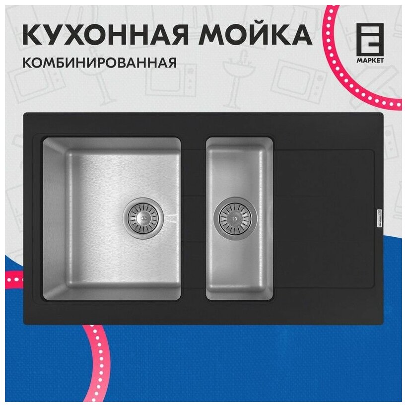 дополнительная чаша, С сифоном, отверстие под смеситель