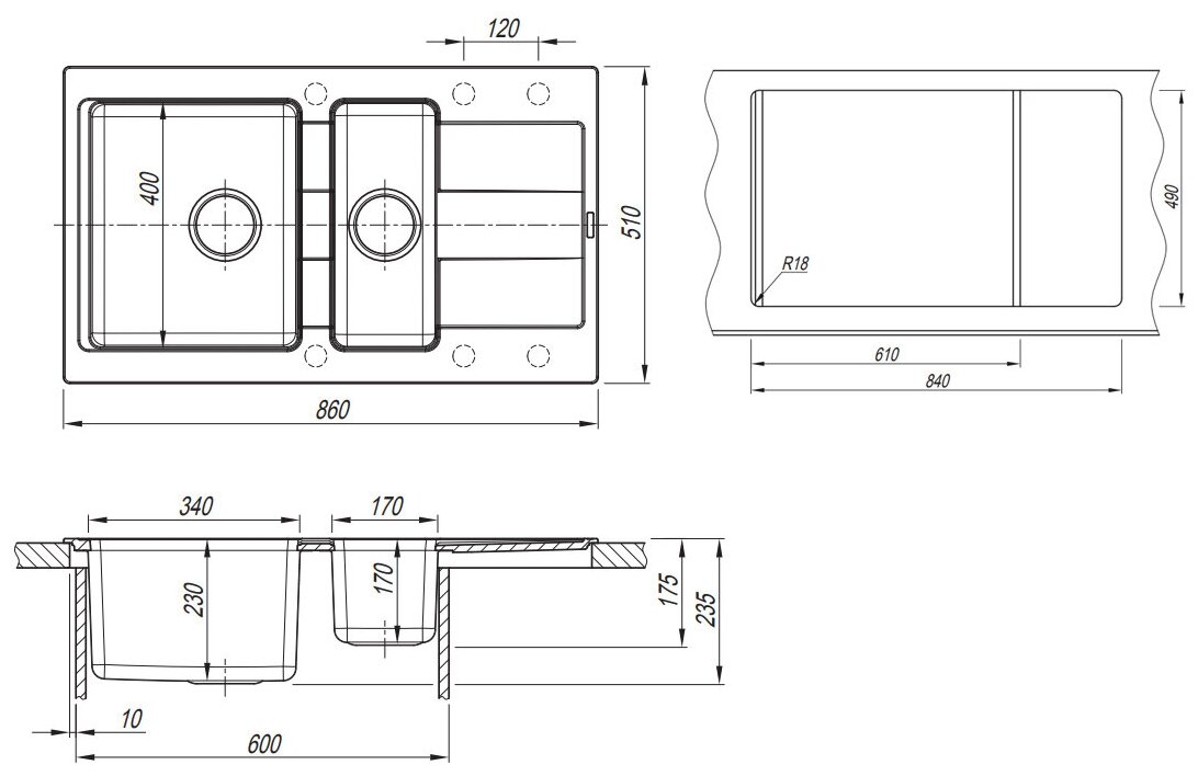 дополнительная чаша, корзинчатый вентиль, отверстие под смеситель, сливная арматура
