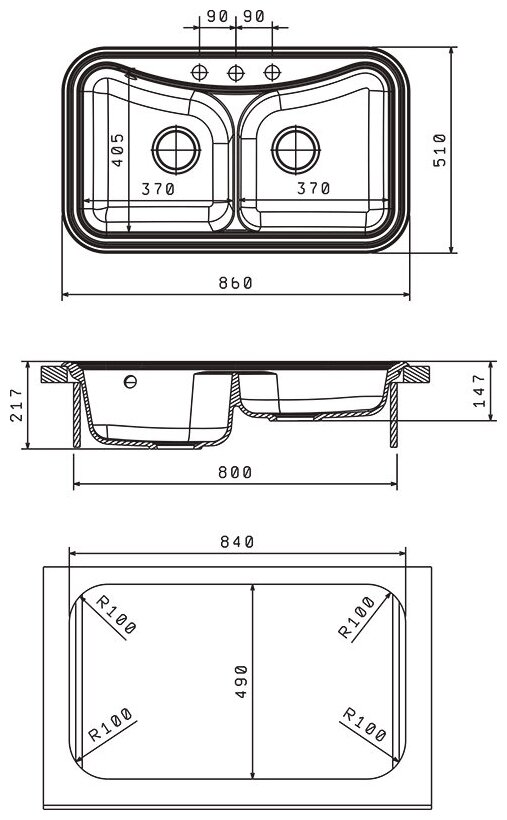 Ширина мойки