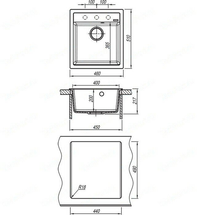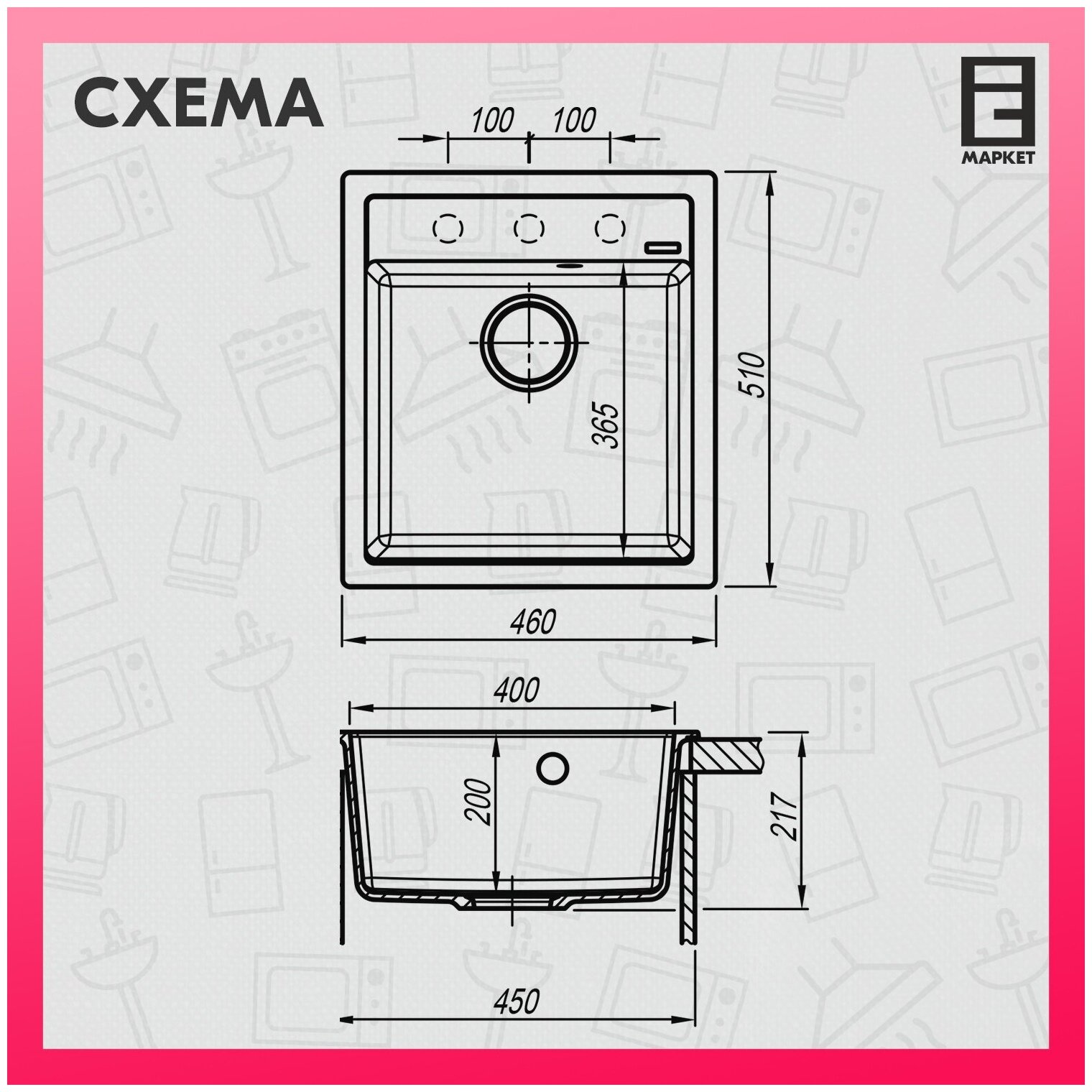 корзинчатый вентиль, отверстие под смеситель, сливная арматура, Отводная арматура с выпуском 3 ? ” (D=90 мм) и переливом, Отводная арматура с выпуском 3 ∎ ∎ (D=90 мм) и переливом, Отводная арматура с выпуском 3 ∎ ∎ D=90 мм и переливом, крепление инструкция, мойка