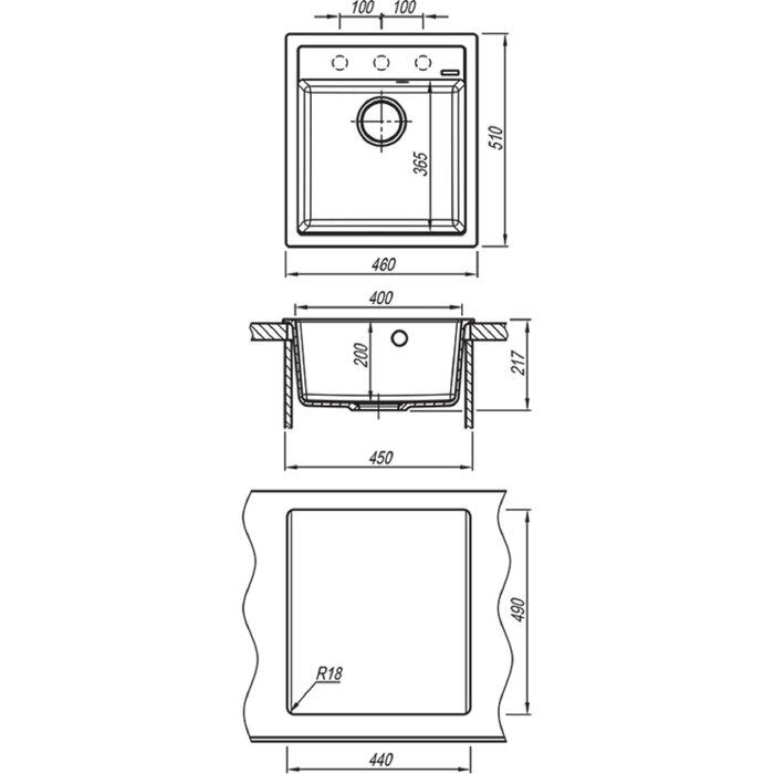 корзинчатый вентиль, крепеж, отверстие под смеситель, сливная арматура, Гарантийный талон, Кухонная мойка, Отводная арматура с выпуском 3 ? ” (D=90 мм) и переливом, Отводная арматура с выпуском 3 ½ ” (D=90 мм) и переливом, Трафарет, документация, инструкция, крепление, мойка
