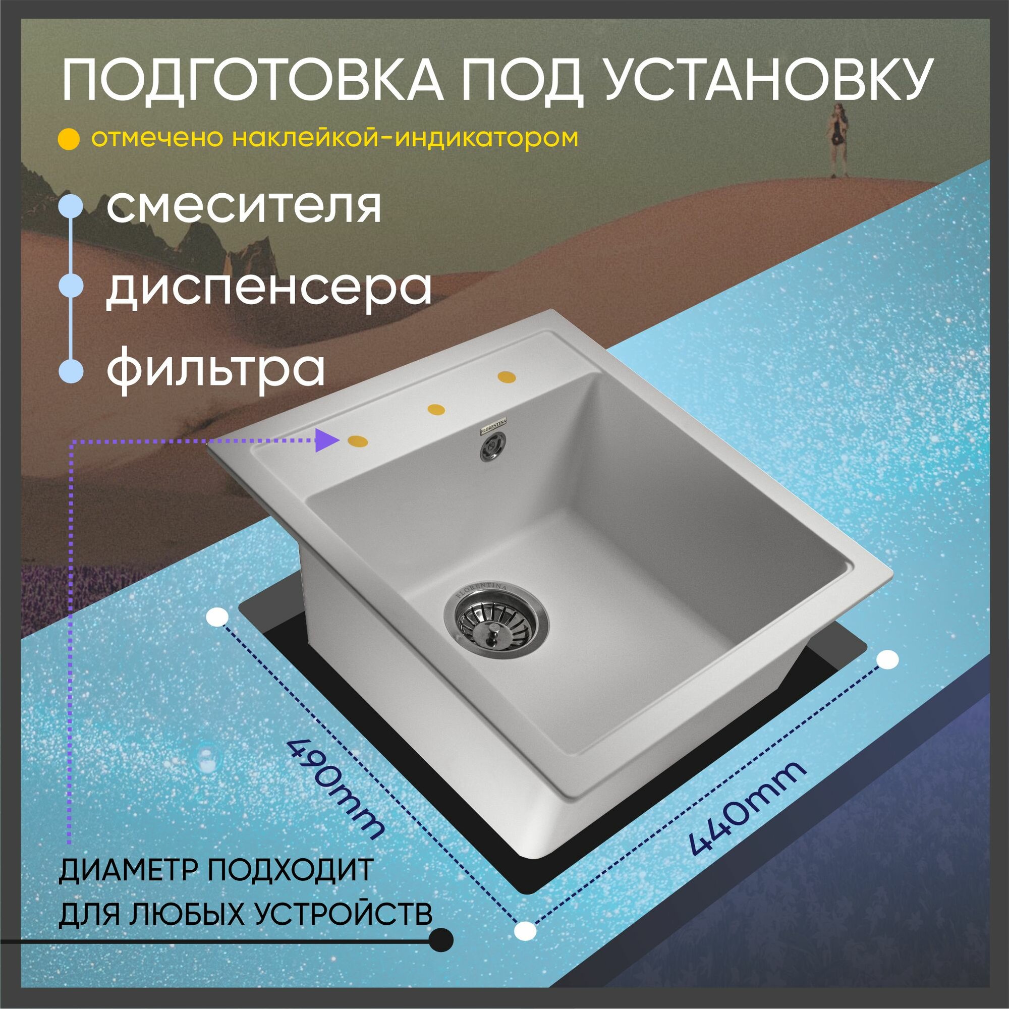 корзинчатый вентиль, отверстие под смеситель, сливная арматура, Гарантийный талон, Кухонная мойка, Отводная арматура с выпуском 3 ? ” (D=90 мм) и переливом, Отводная арматура с выпуском 3 ½ ” (D=90 мм) и переливом, Отводная арматура с выпуском 3 ∎ ∎ D=90 мм и переливом, инструкция, крепление, мойка, сливная арматура с переливом