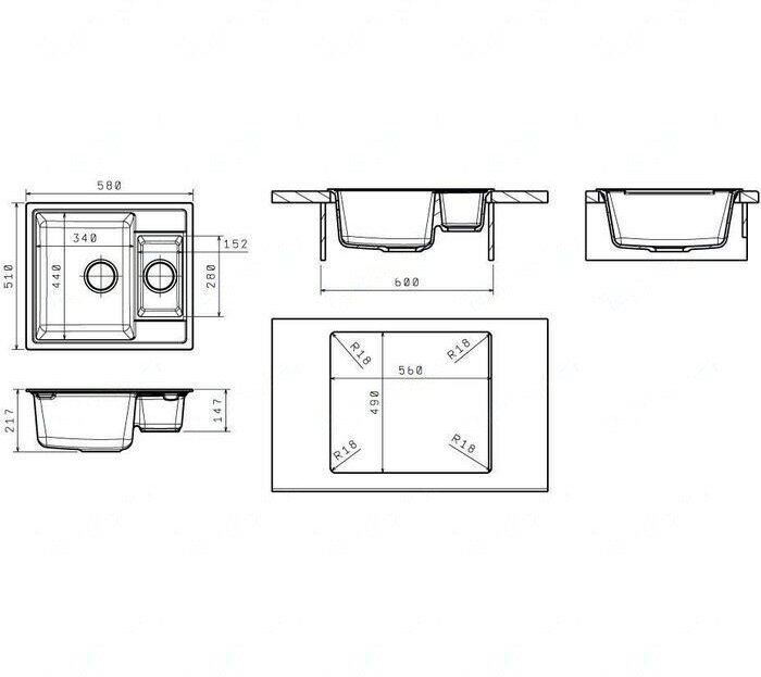 Мойка Florentina Липси 580К черный Fg (20.210.D0580.102)