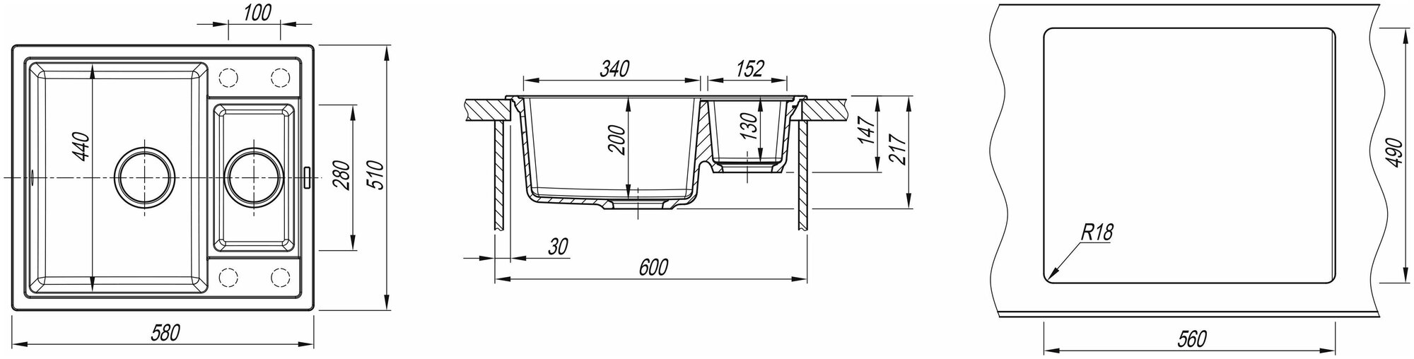 дополнительная чаша, Перелив, ПереливДополнительная чашаС сифономСливной клапан, ПереливС сифоном, Сливные желобки на крыле, корзинчатый вентиль, отверстие под смеситель, сливная арматура