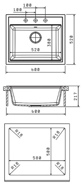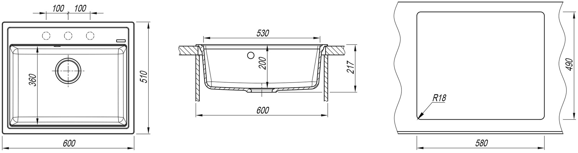 корзинчатый вентиль, крепеж, отверстие под смеситель, сливная арматура, В комплект входит отводная арматура с выпуском 3 1/2" (D=90мм) и переливом, Гарантийный талон, Кухонная мойка, Отводная арматура с выпуском 3 ½ ” (D=90 мм) и переливом, Трафарет, мойка, набор крепежей и трафарет.