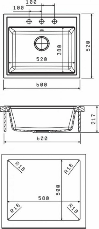 корзинчатый вентиль, отверстие под смеситель, сливная арматура, В комплект входит отводная арматура с выпуском 3 1/2" (D=90мм) и переливом, Отводная арматура с выпуском 3 1/2" (D=90 мм) и переливом, Отводная арматура с выпуском 3 ? ” (D=90 мм) и переливом, Отводная арматура с выпуском 3 ½ ” (D=90 мм) и переливом, мойка, набор крепежей и трафарет.