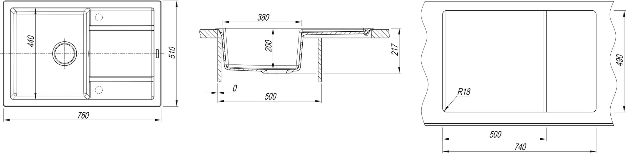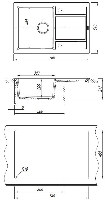 корзинчатый вентиль, отверстие под смеситель, сливная арматура, Отводная арматура с выпуском 3 1/2" (D=90 мм) и переливом, Отводная арматура с выпуском 3 ? ” (D=90 мм) и переливом, Отводная арматура с выпуском 3 ½ ” (D=90 мм) и переливом, документация, мойка