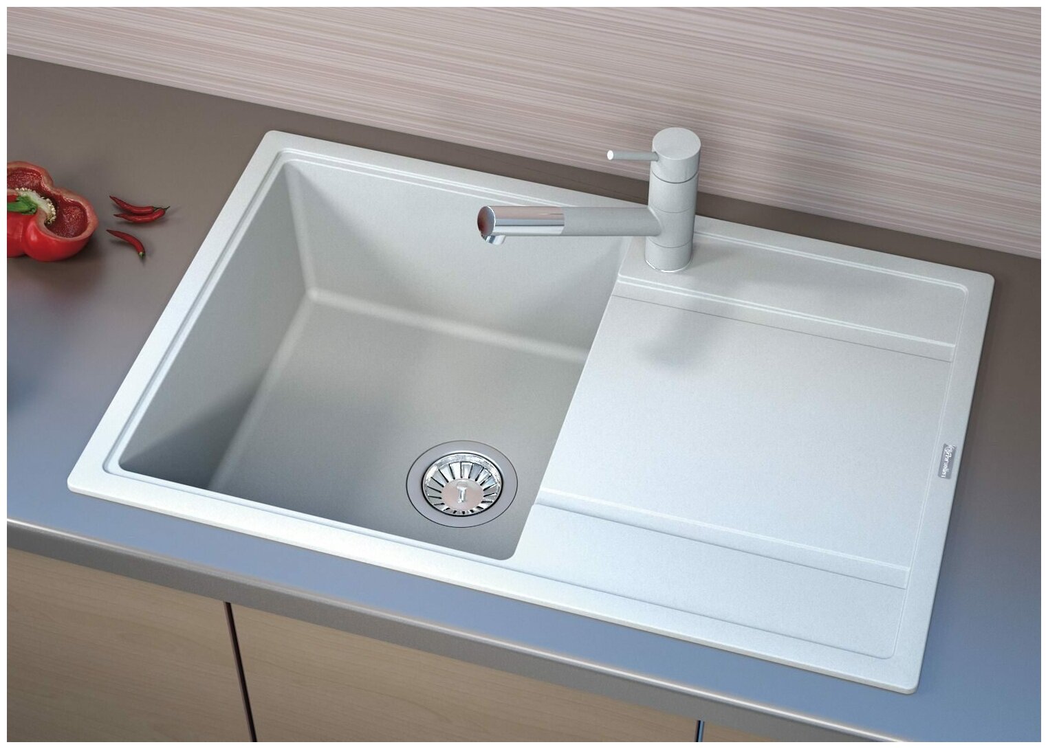 корзинчатый вентиль, отверстие под смеситель, сливная арматура, Мойка для кухни, Отводная арматура с выпуском 3 ? ” (D=90 мм) и переливом, гарантийный талон, инструкция, мойка