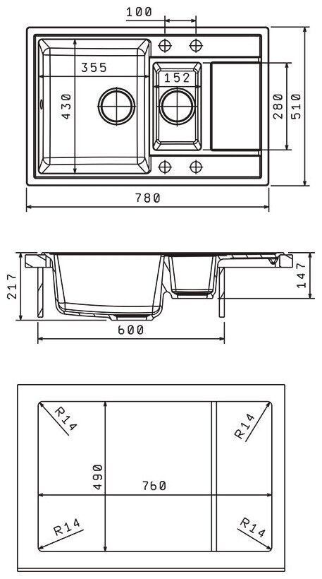 дополнительная чаша, Дезинфекция, Перелив, С сифоном, дополнительная чаша,отверстие под смеситель, отверстие под смеситель