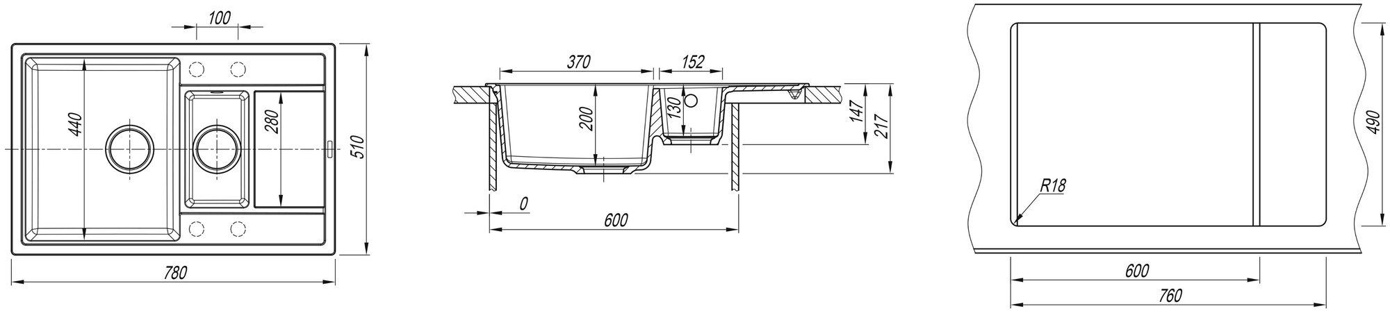 корзинчатый вентиль, отверстие под смеситель, сливная арматура, документация, мойка