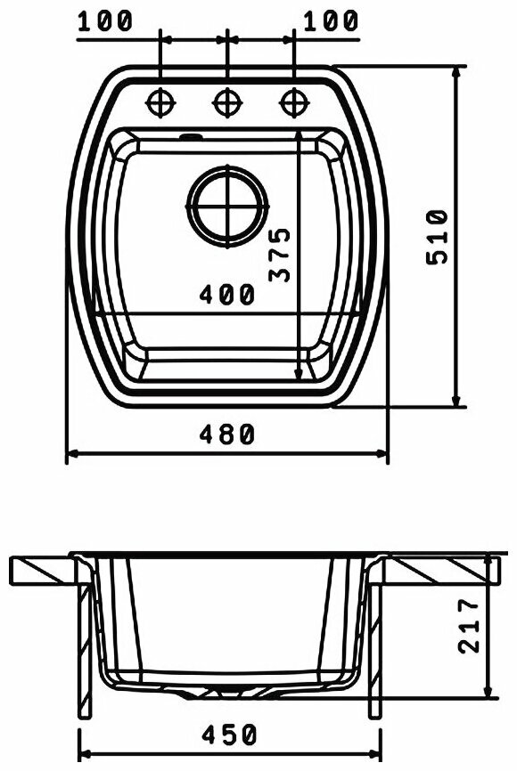 корзинчатый вентиль, отверстие под смеситель, сливная арматура