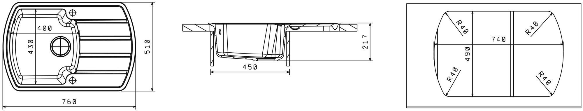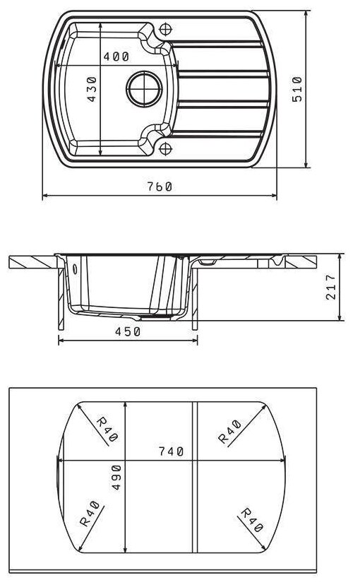 Размер монтажного отверстия под мойку (ШхГ)