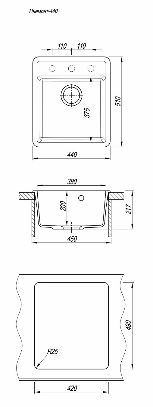 Мойка Florentina Пьемонт 440 кварц 17.030.B0440.305
