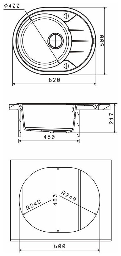 дополнительная чаша, отверстие под смеситель