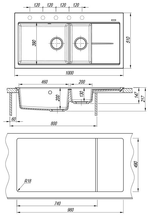 Ширина мойки
